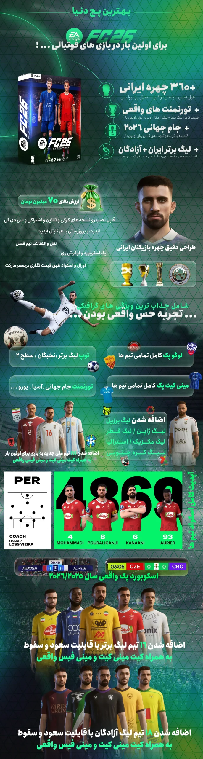 4- این محصول به صورت پچ (بسته الحاقی) میباشد و برای نصب و اجرا به بازی FC 26 نسخه سی دی کی اورجینال یا اشتراکی نیاز دارید.